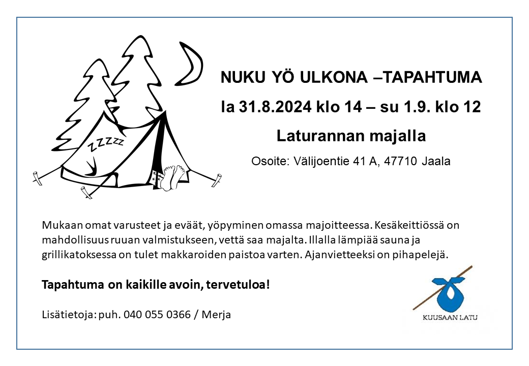 Kaikille avoin Nuku yö ulkona -tapahtuma la 31.8. klo 14 - su 1.9. klo 12