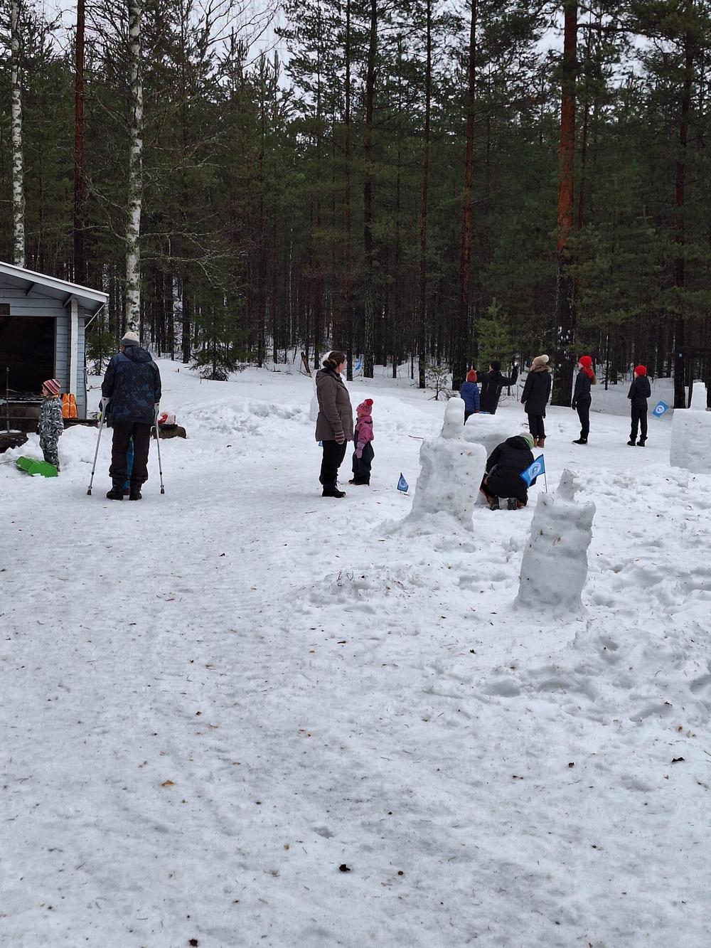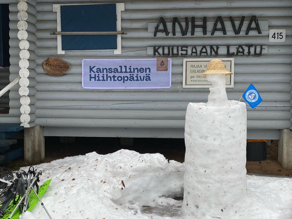 Kuvakooste lumitouhuista Anhavan majalla kansallisena hiihtopäivänä 24.2.